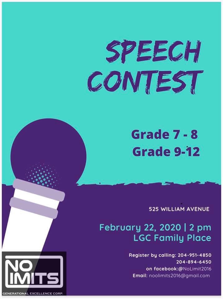 No Limits runs speech content every year. Any High School or Junior High School student who resides in Winnipeg Manitoba and has Ethiopian or Eritrean background is eligible.